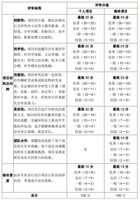 评委根据下表评分标准和评审分值为每个项目进行评分,个人项目和集体项目评分标准和分值不同。