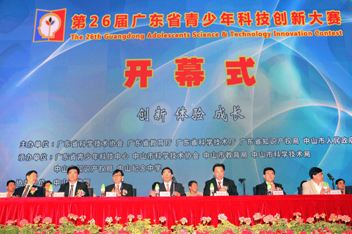 全国人大外事委副主任、省科协主席卢钟鹤宣布开幕,广东省教育厅副厅长朱超华主持开幕式。本届大赛组委会常务副主任、省科协党组书记、副主席梁明代表主办单位致开幕词时指出,参加本届大赛的有22支代表队,参赛选手449名,参评创新项目320项,展示优秀科技实践活动项目109项,获省二、三等奖的优秀少年儿童科学幻想绘画160幅。这些项目集中反映了广东省各地中小学校近年开展科技创新活动的总体水平,广泛代表了全省青少年在科技创新活动方面的最新成果,充分展示了全省青少年的创新意识和实践动手能力。