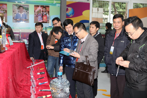 代表们在讨论学生的创新作品