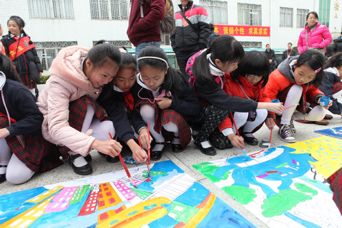 龙岗中心小学的同学们在表演他们自创的科普剧