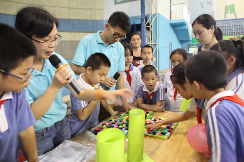 简短的启动仪式后,清林小学的同学们在雅培志愿者的带领下,开始了近2个小时的科学探索快乐之旅。学生们和父母、志愿者们一起学习各种游戏中的科学原理,找寻生活中的各种科学现象,开心玩游戏,快乐探奥秘。该活动不但培养了青少年学生爱科学、学科学和用科学的兴趣,而且为他们搭建亲子平台,与父母架起交流沟通的桥梁。