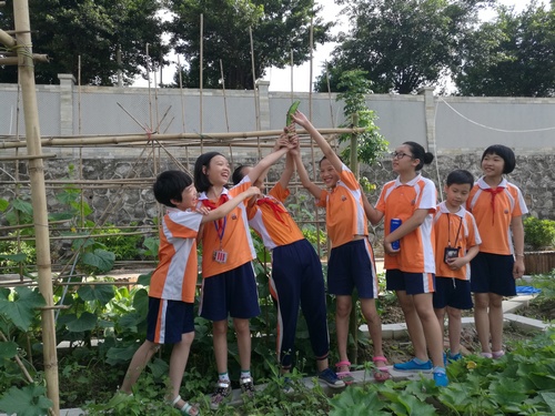 去年龙美小学从广东省青少年科技中心获得了十几枚珍贵的太空黄瓜种子,由于场地问题,到至今4月11日才进行了育种,4月20日进行定植,全部成活,经过一个多月的精心培育,尽管经历了广州今年初夏的雷雨大风、阴雨连连等极端恶劣天气,太空黄瓜还是茁壮成长,目前已经收成了黄瓜三十多个。