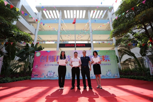 5月31日一早,龙美小学传来热闹的锣鼓声,校门口站满了家长,举着手机在拍着。当天学校举行“创新科技、创想未来”第六届科技节闭幕仪式,同时该校正式启动“走近创客、体验创新”青少年科学调查体验活动。广东省青少年科技中心、市桥城区教育指导中心、龙美村委等有关单位领导以及兄弟学校科技负责人出席活动。