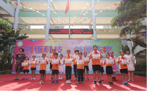 “回首这一学年,我们参加各级各类科技教育比赛取得了一些成绩:获得国家级奖励12项,广东省级奖励21项,广州市级奖励15项,番禺区奖励4项,市桥城区级奖励1项。多幅科幻画作品刊登在《少年科学画报》,多个科技类课题获得立项……”闭幕式上,卢少峰校长对过去的一学年学校开展的科技创新活动以及获得的成果做了简要的介绍。随后,对在这学年里获奖的学生进行颁奖。