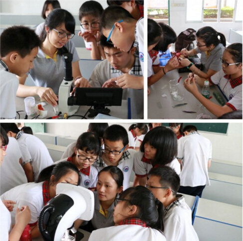 东莞科学馆精心准备的“流动实验室”来到学校的物理实验室,学生们在东莞科学馆辅导员认真细致的指导下完成临时玻片标本制作,通过光学显微镜及数码显微镜观察,一起遨游奇妙的微观世界,提高科学素养。