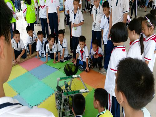 多年来,惠阳实验学校坚持“科学教育、光耀人生”的特色理念,积极开展青少年科学教育,培养学生爱科学、学科学、用科学的习惯,提高学生动手实践、勇于创新的能力,在各级各类科技创新比赛中屡获佳绩,得到了上级领导及社会各界的一致好评。今年,该校锐智队的“横沥汤粉好帮手机器人”更是在第十六届广东省青少年机器人竞赛中勇夺机器人创意比赛初中组第一名,并将代表广东省参加7月份在北京举行的第16届中国青少年机器人竞赛,这在我区还属首次。