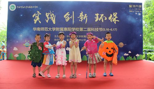 6月14日下午,以“实践 创新 环保”为主题的华南师范大学附属惠阳学校第二届科技节隆重开幕。区科协副主席周云峰、星河集团惠州分公司总经理助理郑艺、惠阳华附校长莫祖军等参加了开幕仪式。