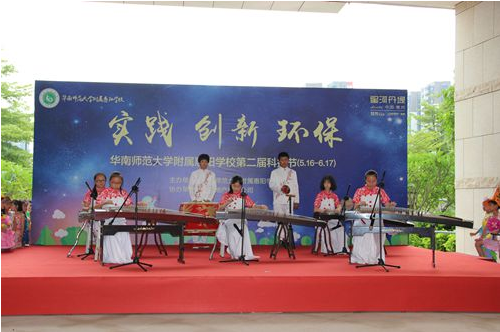 开幕仪式上,现场领导和嘉宾为该校参加省、市科技创新大赛及机器人竞赛的获奖学生颁奖;惠阳华附的科技创新爱好者、机器人选手、环保使者进行了现场实践操作和成果展示;该校获得惠阳区中小学生文艺汇演一等奖的民乐演奏节目《丰收锣鼓》进行了现场展演。来自一、二年级的小朋友们穿上自己和家长一起制作的环保时装,与爸爸妈妈同台表演的亲子环保时装秀更是将开幕式推向了高潮。