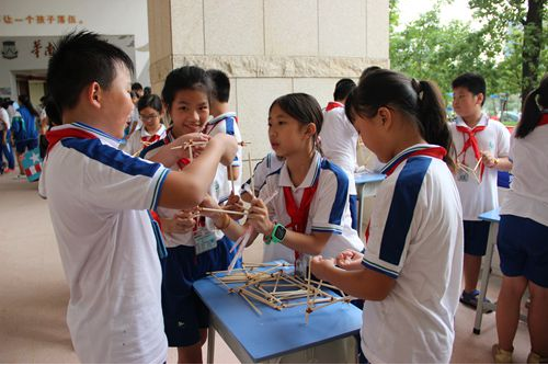 仪式结束后,便热火朝天地展开了各项竞赛项目。为了提高同学们的参与热情,进一步激发科技创新意识,学校在原有项目的基础上增设了多项趣味并有科技含量的活动,如“水果发电”、“车模竞速”、“纸火箭发射”等。“七巧板”、“纸飞机掷远”、“纸牌造型创意”、“筷子搭塔”、“牙签搭塔”、“鸡蛋撞地球”、“气球火箭发射”、“风筝放飞”……17个竞赛项目分年级分场地紧张有序地进行。由同学们精心制作的科技作品也精彩纷呈地出现在展示台上,这些科技作品有赋予想象的科幻画,有精致实用的小制作,也有同学们精心设计的小发明、小创造等。每一件小制作都凝聚着同学们的汗水,每一项小发明都是同学们智慧的结晶,每一件作品都表达了同学们对科学的热爱,折射出了他们的奇思妙想和创新激情。据了解,本次科技节将持续一个月。