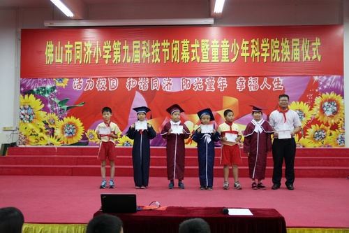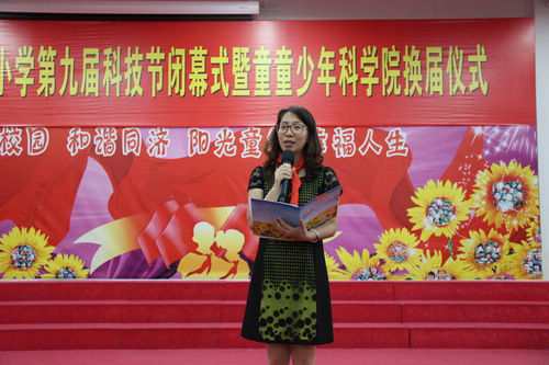 6月15日,我校历时近两个多月的的“走近创客 体验创新”第九届科技节,在全体师生的共同努力和积极参与下,顺利地完成各项任务,取得了圆满成功。广东省青少年科技中心办公室主任彭柏洪及佛山科技学院光电技术实验室主任曾亚光教授出席闭幕式并作了精彩讲座,佛山市科学技术协会卢钻部长、我校李就霞校长参加了颁奖活动。当天,童童少年科学院还举行了换届仪式。