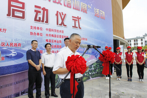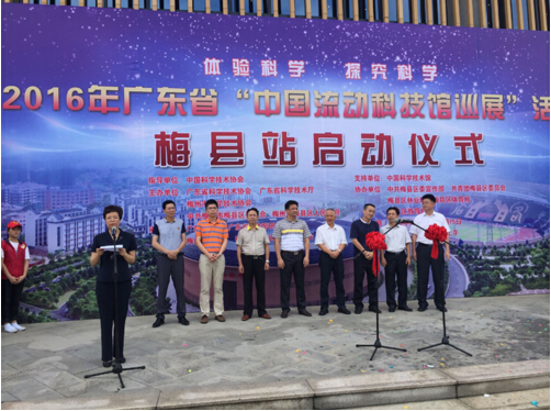 6月29日,广东省“中国流动科技馆巡展”梅县区站科普活动在梅县区文体中心西门二楼启动。梅州市科协党组书记、主席林华玲主持启动仪式,梅州市委常委、统战部部长张丽霞出席活动,广东省科协党组成员、副主席吴焕泉发表了讲话,梅县区副区长黄增国致词,梅州市各县(市、区)科协主席观摩活动,梅县区有关学校师生共300多人参加了启动仪式。启动仪式上,广东科学馆科技航模表演队进行了航模表演,东莞科技馆带来了科普秀节目。