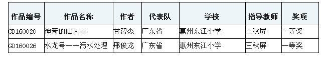 日前,又从第31届全国青少年科技创新大赛上传来好消息,惠城区的广东省青少年科学教育特色学校东江小学科技辅导员王秋屏辅导的两少年儿童科幻绘画,在省科协、教育厅、科技厅主办的第31届广东省青少年科技创新大赛上荣获一等奖之后,再获全国大赛一等奖殊荣,并已公示。