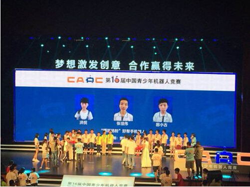 7月23-28日,由中国科协、中国科学院主办,中国科协青少年科技中心与中国科学院大学承办,北京青少年科技中心和怀柔区人民政府协办的第十六届中国青少年机器人竞赛在中国科学院大学隆重举行。来自全国30个省区市、新疆生产建设兵团和香港、澳门特别行政区的497支代表队的1400余名选手齐聚在古老的长城脚下、美丽的雁栖湖畔,展示当代中国中小学生的创意与实力。安徽、四川、福建、广东、广西、湖北和北京的青少年机器人团队脱颖而出,分别获得机器人综合技能比赛、FLL机器人工程挑战赛、VEX机器人工程挑战赛、机器人足球比赛的冠军,20个机器人研究团队的创意项目获得一等奖。惠阳实验学校锐智队的“横沥汤粉”好帮手机器人勇夺机器人创意比赛初中组一等奖,再次创造惠阳历史最好成绩。