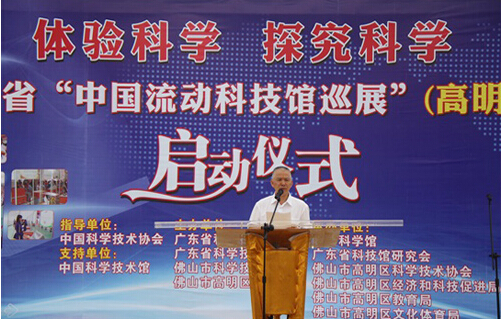 由中国科协指导,中国科技馆支持,广东省科协、广东省科技厅、佛山市科协及佛山市高明区政府主办,佛山市高明区科协承办的2016年广东省“中国流动科技馆巡展”活动(高明站)启动仪式于7月27日上午9时在佛山市高明区文化中心举行。广东省科协党组成员、副主席吴焕泉,广东科学馆馆长何少强,佛山市科协党组书记、主席黄文等领导和群众师生代表300多人出席了本次启动仪式。广东省科协党组成员、副主席吴焕泉,佛山市高明区人民政府副区长李泰霖分别在仪式上致辞,佛山市高明区委区府办副主任黄宝坚主持启动仪式。