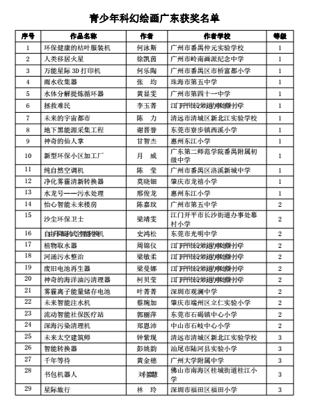 广东青少年在另外两项评比类项目也取得优异成绩,科技实践活动项目获一等奖4项(全国49项)、二等奖5项、三等奖1项,其中佛山市第九小学项目《物候意趣 立本生态》还喜获全国十佳科技实践活动。我省选手在科幻画比赛中更是发挥神勇,创历届最好成绩,13幅作品获得一等奖(全国141项)、11幅获二等奖、5幅获三等奖,一等奖数位居全国第二。