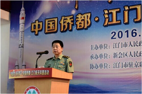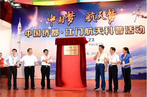 8月23日上午,“中国梦·航天梦”-中国侨都·江门航天科普活动在新会梁启超纪念中学正式启动。航天英雄、中国载人航天办公室副主任杨利伟,中国航天员科研训练中心航天员大队英雄航天员刘洋,中国航天科技集团公司型号总师、科技委常委郭建宁,中国宇航学会秘书长、航天科技交流中心书记王一然,省农业厅副厅长程萍,市领导邓伟根、魏志平、吴森、容福华,新会区区长文彦以及梁思礼院士亲属和市、区相关单位领导和农业科技部门负责人、梁启超纪念中学师生1000多名参加了活动。