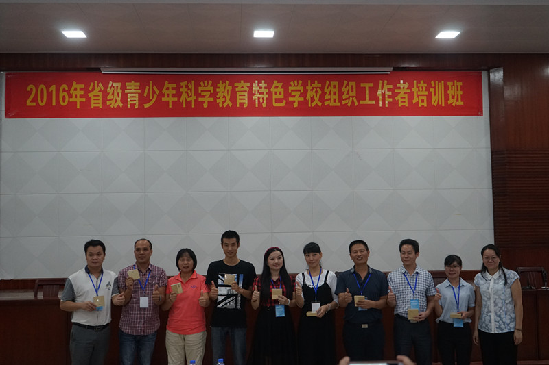 9月21日至24日,2016年省级青少年科学教育特色学校组织工作者培训班在汕尾市陆河中学成功举办,省科协科普部部长黄善辉、省教育研究院教学教材研究室科学科主任王益群、省科技厅政策法规处副调研员夏兴林、省青少年科技中心主任叶新鹏、汕尾市科协常务副主席范志能和陆河县人民政府副县长连小珊等领导嘉宾,以及全省各地100多名青少年科技教育机构和学校的组织者参加。