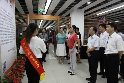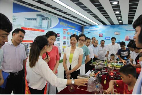 茂名市委常委、组织部部长徐晓霞(右四),副市长崔爽(右五),政协副主席崔锡明(右三)等领导参观科普展