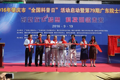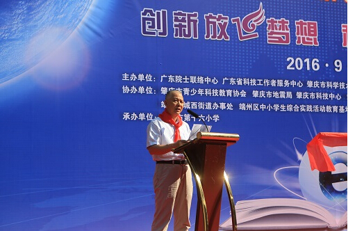 为深入贯彻党的十八大和十八届三中、四中、五中全会精神,深入宣传“创新、协调、绿色、开放、共享”的发展理念,动员全社会共同参与科学普及,形成学科学、爱科学、推广科学的良好社会氛围,促进全民科学素质全面提升,9月19日上午,广东省科技工作者服务中心、肇庆市科协、肇庆市教育局、肇庆市科技局、端州区科协等单位联合在肇庆市端州区第十六小学举办2016年“全国科普日”活动启动暨第79期广东院士讲坛活动。