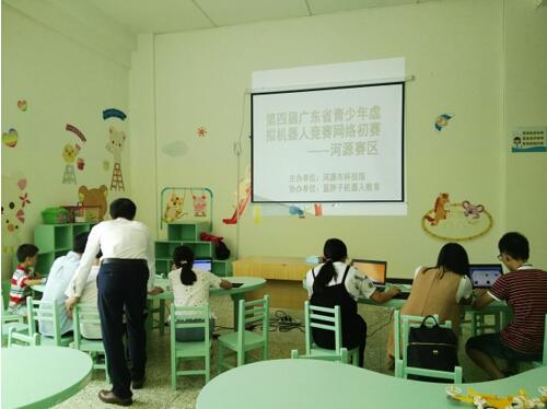 10月16日下午,河源市科技馆与蓝胖子机器人教育机构首次馆企合作的机器人培训班学员,在科技馆参加第四届广东省青少年虚拟机器人竞赛的网络初赛。