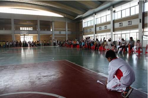 初中组“挺立吧,纸牌塔”(纸牌结构抗风赛)现场