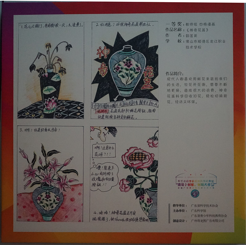 南粤小创客、创玩大世界。首届广东青少年科普艺术大赛优秀作品展于2016年11月1日至30日在广东科学馆隆重举行,共展出获得省赛一、二等奖的优秀折剪纸、三行诗歌和四格漫画作品124幅。
