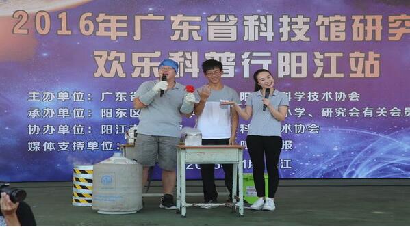 为贯彻落实全民科学素质纲要的文件精神,进一步提高我市青少年科技教育水平,11月3日至4日,省科技馆研究会、市科协联合主办的广东欢乐科普行阳江站活动在阳东区阳东一中、阳东广雅小学举行。本次活动参与单位达15家,来自广东科学中心、广东科学馆、东莞科技馆、深圳市科学馆、佛山科学馆等会员单位共21个科普项目。