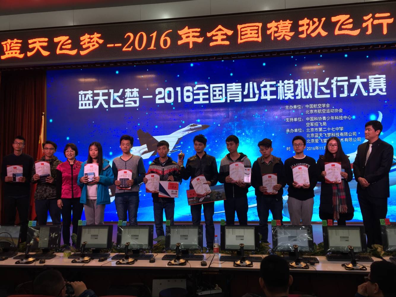 11月14日,中国航空学会和北京市航空运动协会联合主办的蓝天飞梦——2016全国青少年模拟飞行大赛在北京圆满落幕,全国12个省市86所中小学校520多名学生参加。广东学子在青少年项目各9个冠亚季军中,喜获冠军7个,亚军5个,季军4个,成绩独占鳌头。