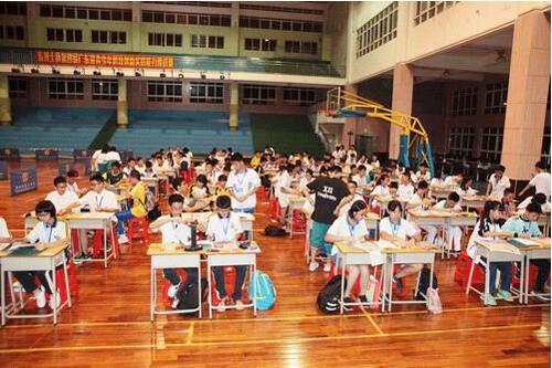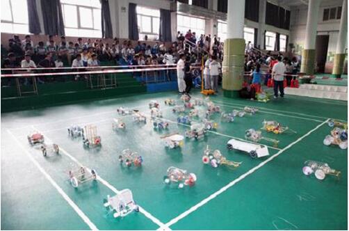 广东省青少年科技创新实践能力挑战赛融动手与动脑、科普与艺术于一体,趣味性强,有利于培养青少年动手创新能力和团队合作精神,自2013年创办以来,深受全省广大师生的欢迎。小学组为“飞翔吧,纸火箭”,要求学生用PVC管吹出纸火箭,比试飞行距离和穿环准确性;初中组为“挺立吧,纸牌塔”,要求塔状纸牌结构在抵抗“台风”吹袭的情况下,比试高度和受风面积;高中组为“奔跑吧,环保车”,小车要能成功爬越小坡,比试撞击小球的准确性和行驶距离的远近。参赛学生通过比赛,学习了科学知识,体验到了创新乐趣。