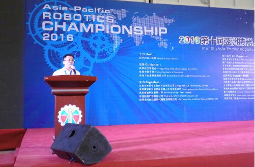 亚洲机器人锦标赛已在国内外举办了九届,今年是第十届。机器人竞赛为青少年科技实践体验提供了广阔的舞台,对培养青少年科学创造性思维和解决问题能力、提高学生科技动手实践技能力和培育国家科研优秀后备力量发挥了积极作用。冯日光在致辞中指出:广东省科协一贯大力支持各级科协组织开展科学学术交流,活跃科学学术思想,促进学科创新发展。同时也大力支持组织开展民间科学技术交流活动,促进科学技术合作,推动发展各科学技术团体和科技工作者的友好交往。第十届亚洲机器人锦标赛的举行,为青少年学生提供了不同于学校教育的科技交流平台,提供了一次难得的互相学习交流机会,为提高青少年学生的创新创造能力打下坚实的基础。同时,鼓励青少年学生把自己的科学理想和祖国、民族的共同理想统一起来,大力弘扬求真务实的科学精神,努力学习科学文化知识,刻苦钻研前沿科学技术,勇于攀登科技高峰,为我国成为世界科技强国和实现中华民族伟大复兴的“中国梦”展现自己的人生价值,谱写绚丽的青春之歌。