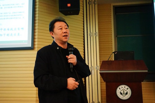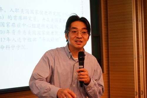 午餐后,师生们马不停蹄又迎来了活动的重头戏——大师讲座。中山大学容益康教授为大家带来了没有主题、别具一格的讲座,他简单介绍学习经历和研究领域后,就任由同学们自由提问。常人担心的冷场问题在英才计划学生面前显得多余了,2小时里没有冷场,没有中午的困睡,变成了一场热闹非凡的互动交流。同学们的问题既有教授研究的癌症专业,又有中西教育的对比,还有科研之道等等。渊博的知识、开阔的视野、丰富的经历,让荣教授都能一一作答,现场气氛异常活跃。