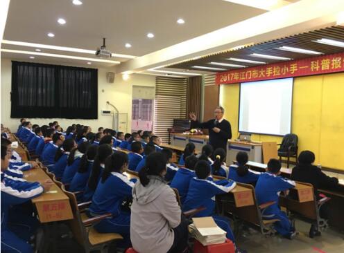 2月27日上午,江门市“大手拉小手-科普报告希望行”首场科普演讲在怡福中学开讲,中国科学院科普演讲团团长、中国科学院地质与地球物理研究所白武明研究员为该校400人多名师生作了《地球内部探秘》精彩报告。你知道地球的“童年”是什么样的吗?你知道火山、地震是怎么形成的吗?大陆真的会漂移吗?一连串的提问,激发了现场青少年们的思维。同学们兴奋地说:“这堂讲座真是太棒啦!老科学家精彩的演讲不仅为我们讲解了地球的秘密,更为我们打开了一扇科技之门”。