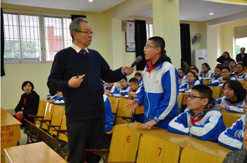 白武明教授结合自己多年的研究经验,将火山、地震、地球磁场、大陆漂移等多个学术问题通过生动形象的图片、深入浅出的文字、风趣幽默的讲解为同学们带来了一堂妙趣横生、精彩纷呈的科普讲座,和同学们共度了一次别开生面的地球探秘之旅。他学者的风度、渊博的知识、精辟的见解令同学们心折不已。随后还展开了互动交流。他还谈到:“少年们就是要有这样敢于提问,敢于质疑,敢于探索的精神,这是人类科技文明发展的原动力,我非常高兴在同学们身上能看到这种可贵的精神在不断地传承和发扬!”
