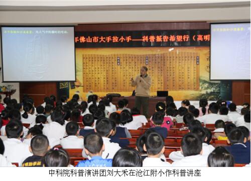 2017年2月28日至3月2日,由佛山市科协、高明区科协主办的“2017年佛山市大手拉小手——科普报告希望行(高明段)活动”在高明区举行。活动邀请中国科学院老科学家科普演讲团徐文耀、陈贺能、陈光南、刘大禾等四位老科学家到区内八所中小学为近3000名师生开展《守护地球》、《物理学趣谈》、《金属3D打印》、《能源科技的未来》等精彩纷呈的科普报告。