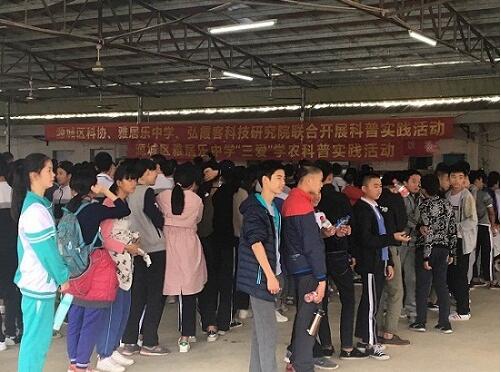 3月13日,河源市源城区科协联合雅居乐中学、弘霞客科技研究院组织400名学生到源城区埔前镇东兴旺农场开展以传播农业科学知识,引导学生热爱祖国、爱科学、爱劳动“三爱”为主题的科普实践活动。