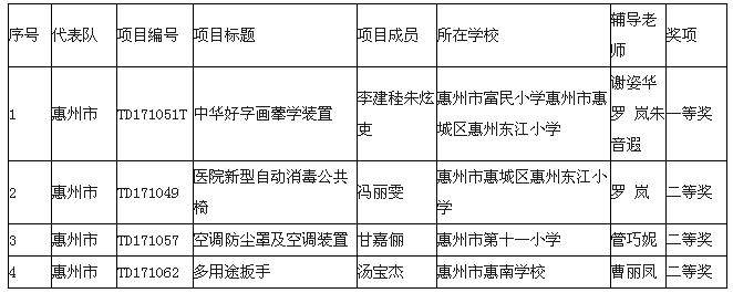 惠州市代表队表现出色,荣获一等奖的作品6件,二等奖22件,三等奖19件。其中4件作品将参加全国的大赛。