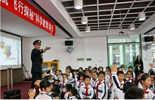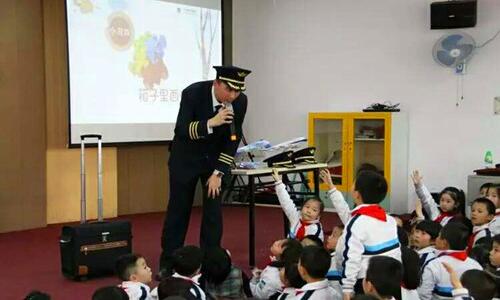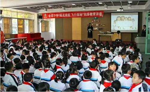 3月28日下午,汕头市龙湖区金珠小学华美校区开展了以“阳光南航飞行探秘”为主题的科学教育讲座。来自南航汕头航空有限公司的青年志愿者与学校一年级300余名师生共同参加本次活动。