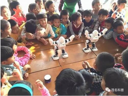 茂名市科协还为学生们带去精彩的机器人表演,跟随音乐舞动着的机器人,深深地吸引着他们,每到机器人作高难度动作时,学生们都报以热烈的掌声。还有一些学生拿着笔记本,一边观看机器人表演,一边用文字记录下这精彩的时刻。老师们都表示,孩子们对新鲜事物充满好奇心,渴望感受科学所带来的神奇魅力,让他们接触这些高科技产品和科普展品,既能开拓他们的思维,激发他们学科学、爱科学、讲科学、用科学的浓厚兴趣,又有利于增强他们的创新意识和创新能力。