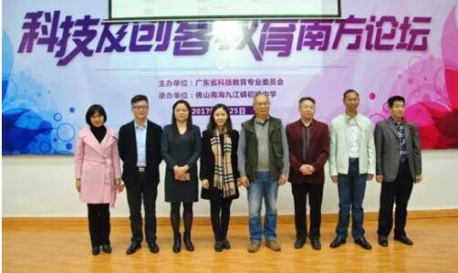 广东教育学会常务副会长、原广东第二师范学院校长刘劲予先生、广东第二师范学院广东省科技教育专业委员会理事长、教授胡继飞先生、中山大学水生动物研究所副所长丶博导、水生动物学家杨廷宝先生、广东省教育厅教育信息化办公室副主任林君芬女士、佛山市南海区经济和科技促进局副局长徐婉贞女士、佛山市南海区教育发展研究中心主任禹飚先生、佛山市南海区九江镇教育局副局长谭壬香女士、佛山市南海区九江镇初级中学陈海燕校长出席了本次论坛开幕式。佛山市南海区九江初级中学刘志伟主任与区展鉴老师在本次论坛上进行了经验介绍。