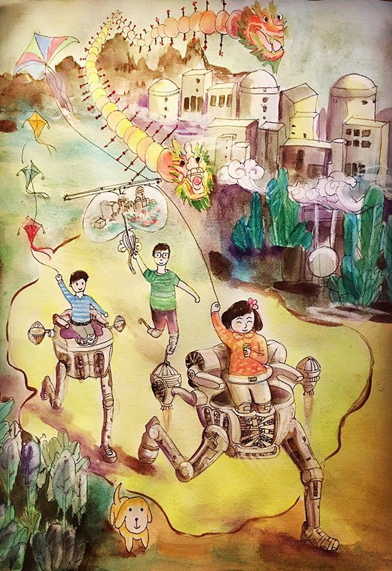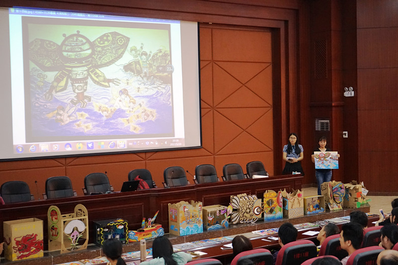培训班一如既往采用专家讲座、模拟实训和交流体验等相结合的方式。在简短开班仪式后,广州市儿童活动中心主任古方教授从科幻画的选题、规则及绘画技巧等方面为老师们作了详细的讲解和分析,讲座通俗易懂,案例丰富。其后,参训人员分为16个组,围绕“风筝·未来”的主题,团队完成科幻绘画创作,轮流上台讲解和展示作品,专家现场逐一点评。每组还选派1名学员组成评委团队进行打分,评选表彰了3个优秀团队。