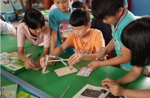 据了解,2017年青少年科学调查体验活动是由中国科协、教育部、发展改革委、中央文明办、共青团中央主办,中国科协青少年科技中心承办单位。活动中,举办方配发活动指导手册、活动指南和活动资源包给学校。科技辅导老师把学生分成不同的小组,开展“我爱绿色生活”主题资源包拓展实践活动。在老师的指导下,学生使用资源包中的木棍、纸板、盐水、电池等生活中常见的简易材料,共同完成了“风力发电”、“盐水小车”、“废纸制作3D眼镜”、“污水净化装置”等17个生动有趣的科学实验。在动手操作中,让学生了解电磁、风能、太阳能相互转化的基本原理,掌握了污水分层净化和制作吸尘器的简易方法,体会了节能环保、绿色生活的重要意义。