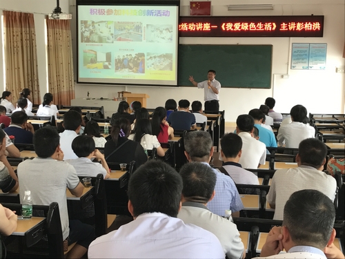 活动期间,省青少年科技中心办公室主任彭柏洪还为全镇各中小学校校长、科技老师作《我爱绿色生活》的讲座,使大家对调查体验活动有初步的认识,并对我省开展的科技活动有一定的了解。