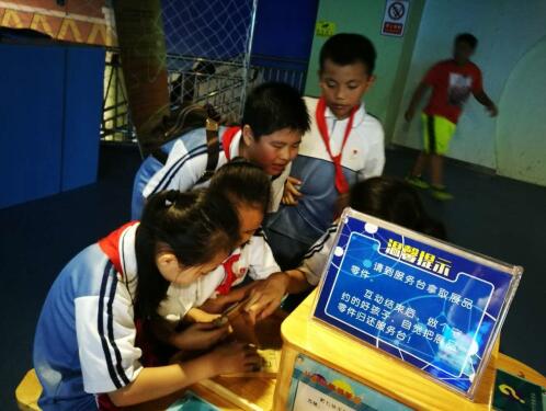 学生在惠州科技馆体验科普展品
