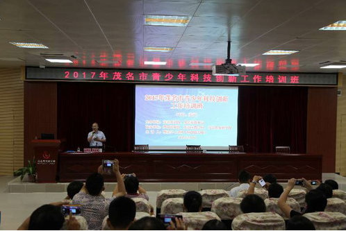 为进一步深入贯彻实施《全民科学素质行动计划纲要》,积极推进茂名市中小学校青少年科技创新工作更好地开展,7月3-5日,茂名市科协、茂名市教育局在市区、电白、化州、高州、信宜举办5场青少年科技创新工作培训班。7月3日上午,首场培训班在茂名市龙岭学校举行,邀请到我省科技创新教育专家覃宝学老师作专题培训,就如何指导学生开展科技创新发明、实践活动作专题辅导报告。