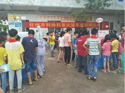 化州市科协科普大篷车进校园活动现场