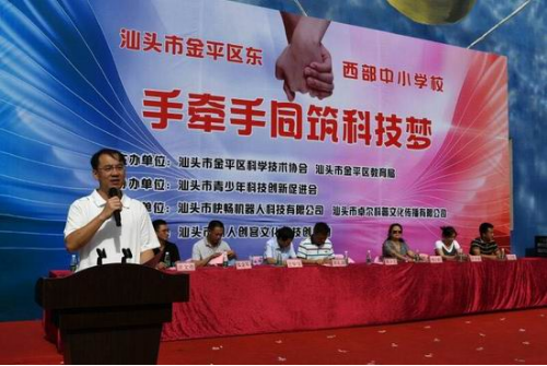 7月15日,一场由汕头市金平区科协、汕头市金平区教育局主办,汕头市青少年科技创新促进会协办的金平区东西部学校“手牵手同筑科技梦”活动在遇见赛先生汕头市科技教育体验馆隆重举行。汕头市金平区科协主席刘礼深,汕头市金平区教育局党委书记蔡少文出席了活动,来自金平区东西部40所中小学校的320名学生和带队老师参加活动。