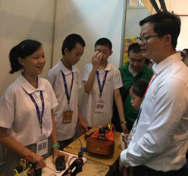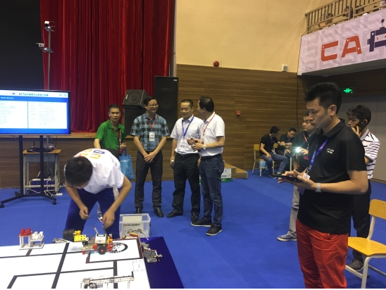第十七届中国青少年机器人竞赛于7月17日至22日在中山市实验中学隆重举行。汕头市澄海实验小学代表队参加了主题为“我的学习伙伴”的机器人创意赛,获得了该项目的最高奖项优秀创意奖。区委常委、统战部长林典发带区科协、区教育局有关负责同志应邀观摩了比赛,并亲临现场关心、指导小选手。