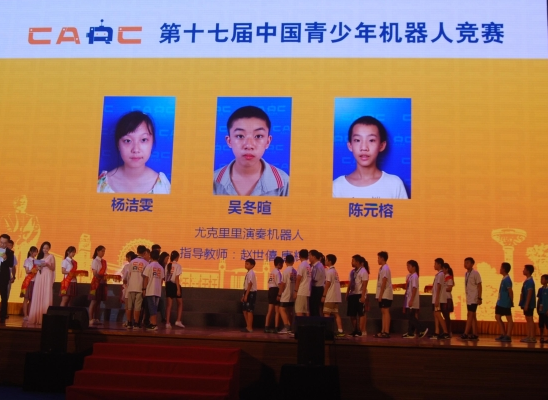 澄海实验小学的杨洁雯、吴冬暄、陈元榕三位同学以广东省机器人创意比赛第一名的成绩代表广东省参加了主题为“我的学习伙伴”的机器人创意赛。本届机器人创意比赛旨在促进学生了解人类学习方式的转变、新技术如何辅助人类学习,提高教育质量,同时尝试创意一个改善或辅助学习的机器人作品。杨洁雯、吴冬暄、陈元榕三位同学的参赛作品是尤克里里演奏机器人,他们在赵世僖、唐辉宏老师的指导下,利用Arduino等开源软硬件进行制作并编写程序,使尤克里里按一定的音乐节奏进行演奏,可以为学习者提供伴奏或学习者练习伴奏、演奏之用。该作品独特的创意以及队员们精彩的答辩获得了评委们的一致好评,在36支代表队中脱颖而出,最终获得了优秀创意奖。这是本次机器人创意赛的最高奖项,是澄海区选手参加全国性机器人竞赛零的突破,也是汕头市选手在该项目成绩的历史性突破。