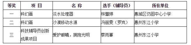 日前,从中国科协、教育部、科技部、团中央等九部门联合主办,于2017年8月14至19日在浙江省杭州市隆重举行的第32届全国青少年科技创新大赛上传回喜讯,惠州市参赛作品表现出色,有5件作品获奖。惠城区的青少年和科技辅导员继续取得优异成绩,由区科协送参的3件作品在大赛中获得优异成绩: