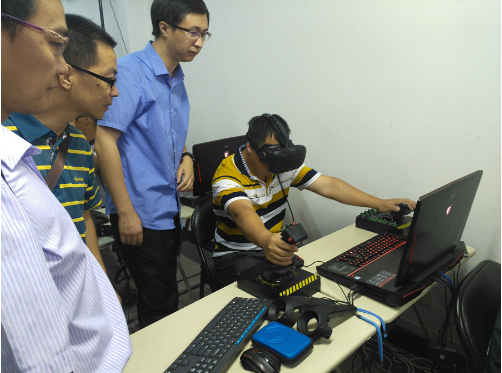 在北航重点实验室体验VR模拟飞行(张炜哲 摄)